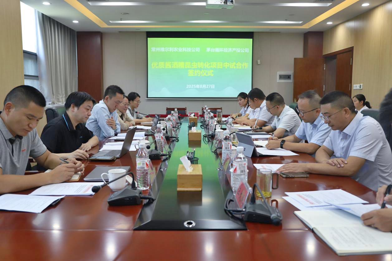 8月27日上午,betway必威集团旗下常州betway必威农业科技发展有限公司(下称“betway必威农业”)与贵州茅台酒厂 (集团) 循环经济产业投资开发有限公司(下称“茅台循环产投公司”)正式签署中试合作协议。双方将携手开展“优质酱酒糟黑水虻昆虫转化资源利用中试验证研究” 项目,打造“酱酒糟——昆虫蛋白——宠粮”产业链,共同探索酿酒副产物资源化利用的创新路径。
